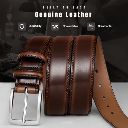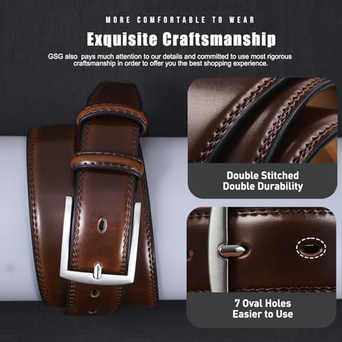 GSG SINCE 1998 Mens Genuine Leather Dress Belt Double Stitched Formal Mens Belts for Suits, Jeans, Uniform With Single Prong Buckle M22067