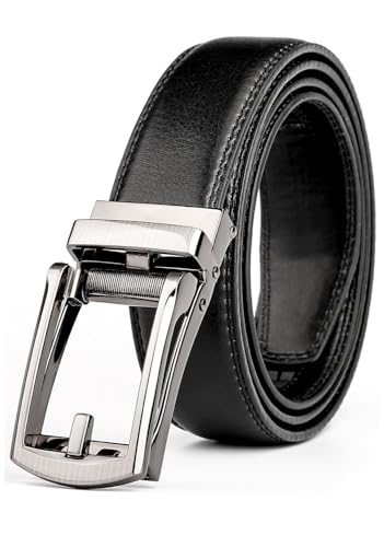 JASGOOD Men’s Genuine Leather Ratchet Belt Cowhide Belt with Open Buckle, 33/35mm Wide