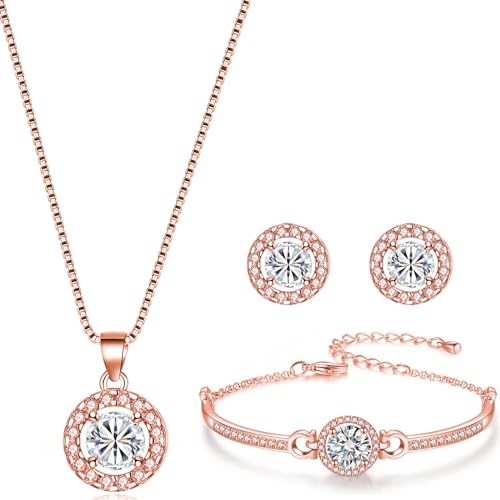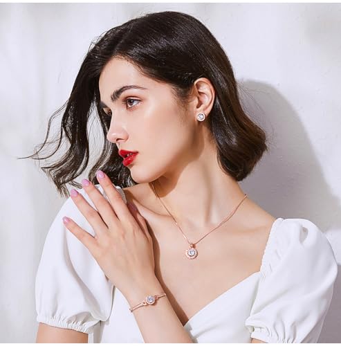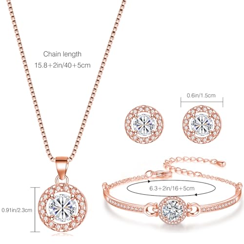 MESU Jewellery Set Pendant Necklace Earrings Tennis Bracelet Set Cubic Zirconia Jewellery for Women