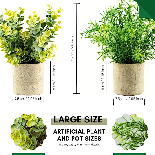 🌿 DIMENSION – The 3 mini artificial succulents plants measure appr. 7cm tall and 7cm wide. The fake potted rosemary and eucalyptus are appr. 25cm tall (from top of the plant to the bottom of the pot) and 20cm wide (from tip to tip of the leaves). Arrange them together or let each one shine on its own in separate space!